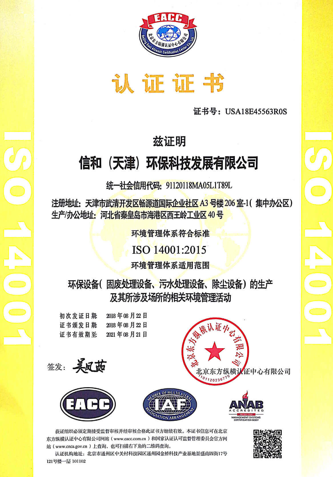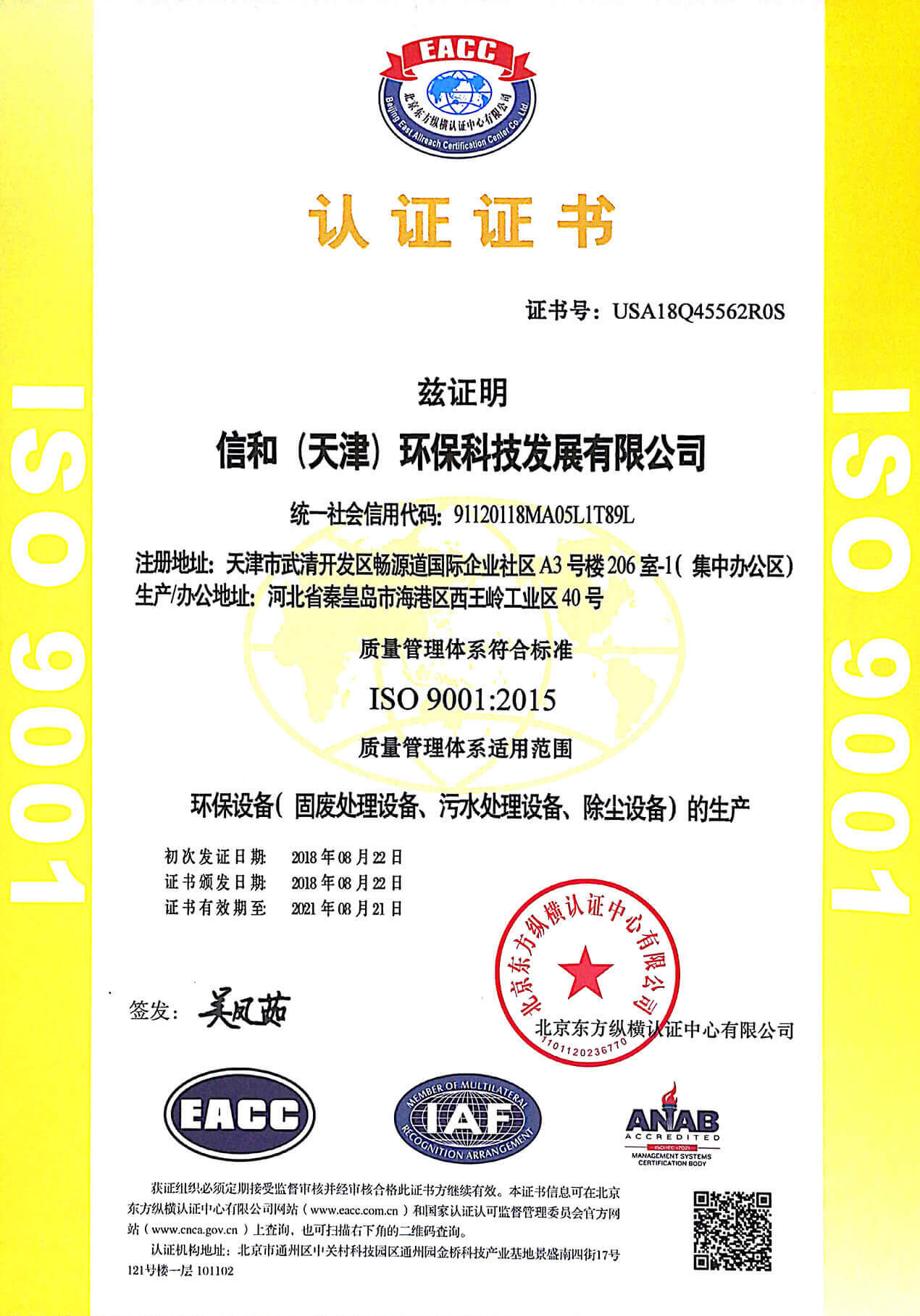 信和(天津)環??萍及l展有限公司是一家專業從事環保設備研發的生產型企業,坐落于天津市武清開發區,注冊資金2000萬元,擁有≤中華人民共和國進出口企業資格證≥和≤安全生產許可證≥。公司為《中國環保產業協會會員單位》《中國城市環境衛生協會會員單位》《中國節能協會會員單位》。企業現有員工168人,其中高級職稱技術人員65名、1個技術研發中心和4個生產車間,擁有國際先進的板材加工中心、激光切割機、數控沖剪機、等離子切割機等下料成型設備。
